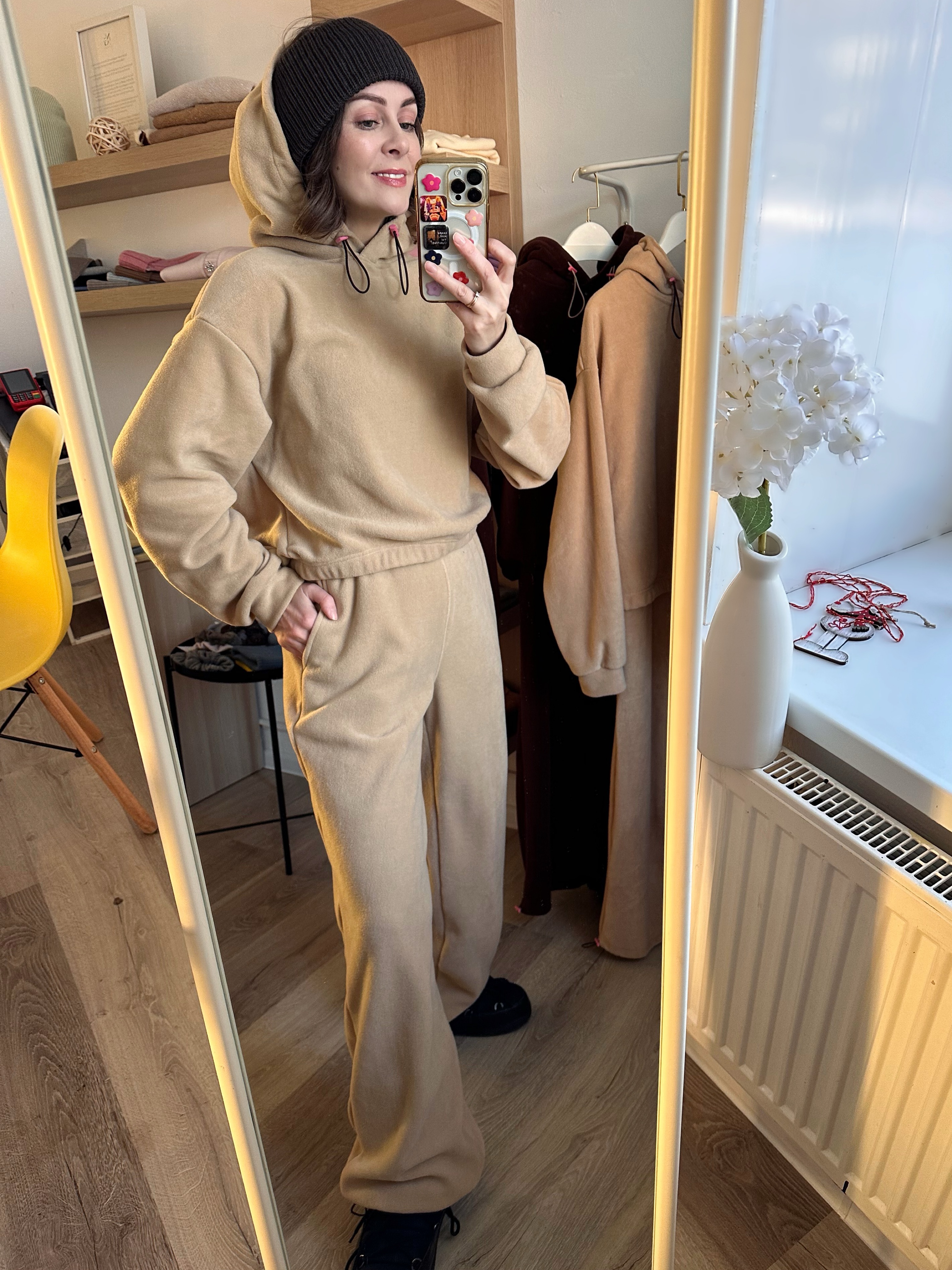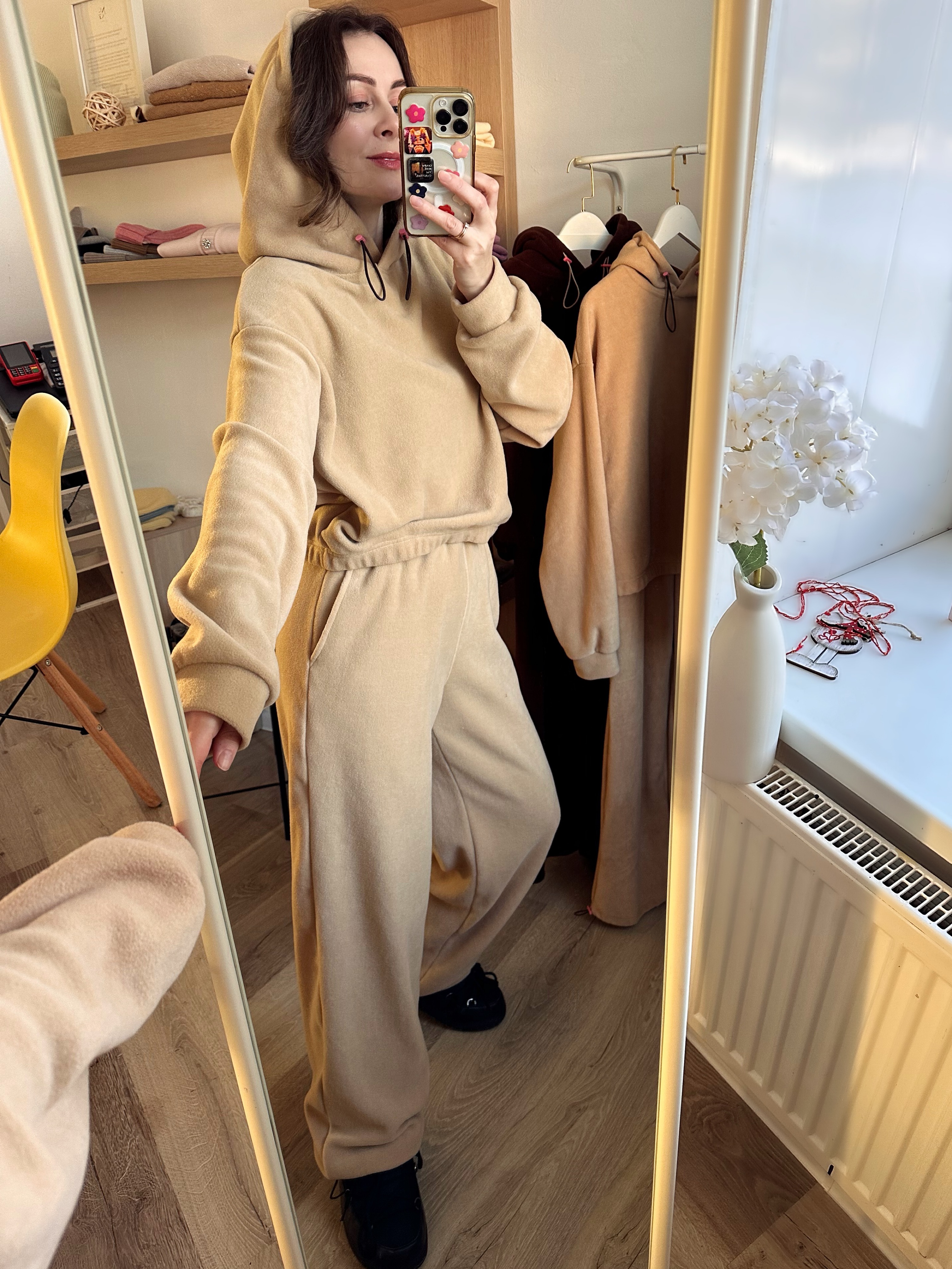 Длина толстовка по спинке: 42/44 - 55 см, 46/48 - 60 см.