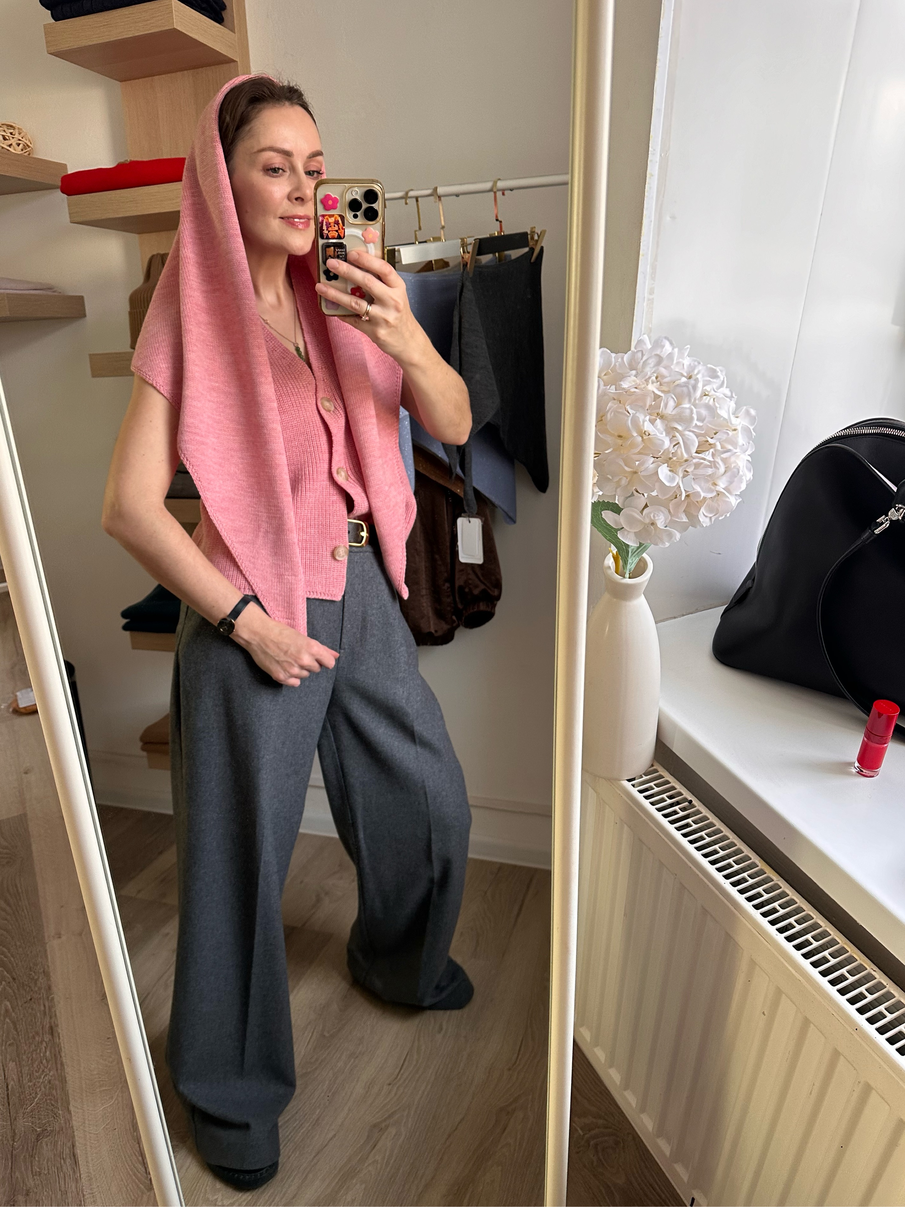 Косынка большая из 100% мериноса розовый меланж