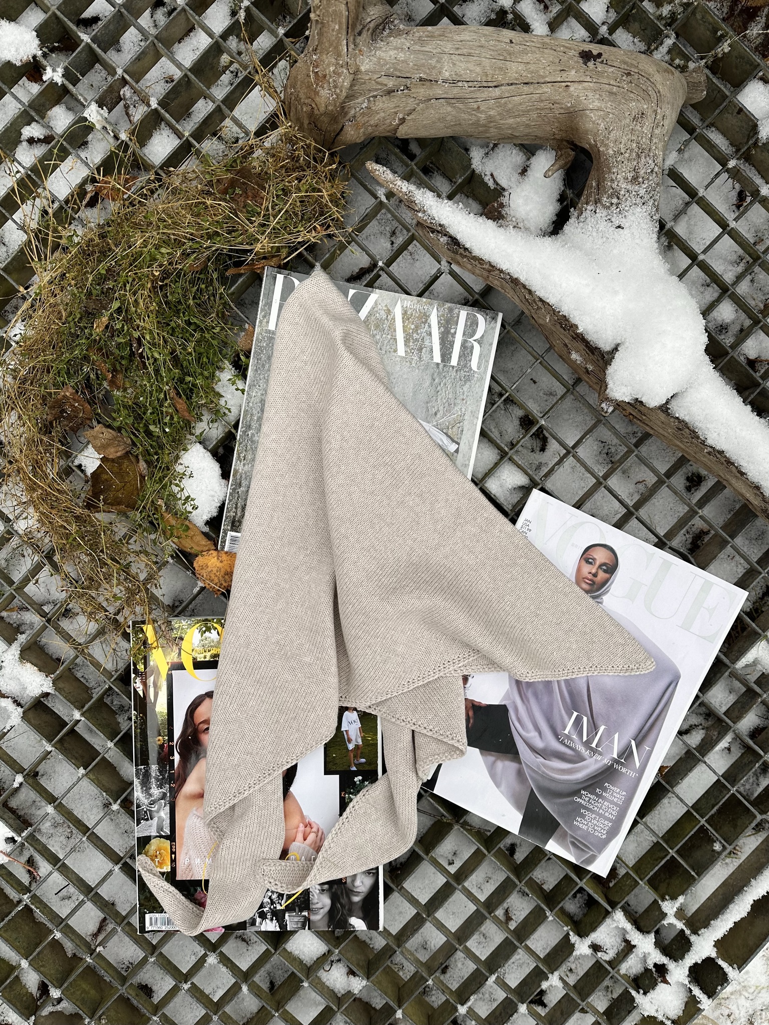 Косынка-треугольник из гребенного премиального итальянского мериноса. По краю косынка обвязана в ручную крючком. Этот аксессуар станет стильным акцентом образа. Тонкий, но теплый меринос согреет мягким теплом.
