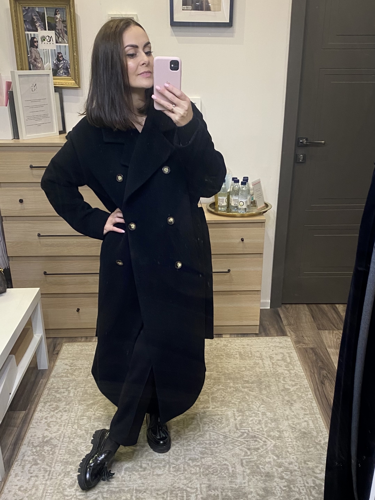 Теплое двубортное пальто из шерсти с альпакой ручной работы для повседневной носки. Демисезонное, на подкладке. На двойном ряду роговых пуговиц. Отложной воротник, спущенная линия плеча. Удобные карманы-планки спереди. Пальто слегка сужается к низу, что делает силуэт утонченнее.