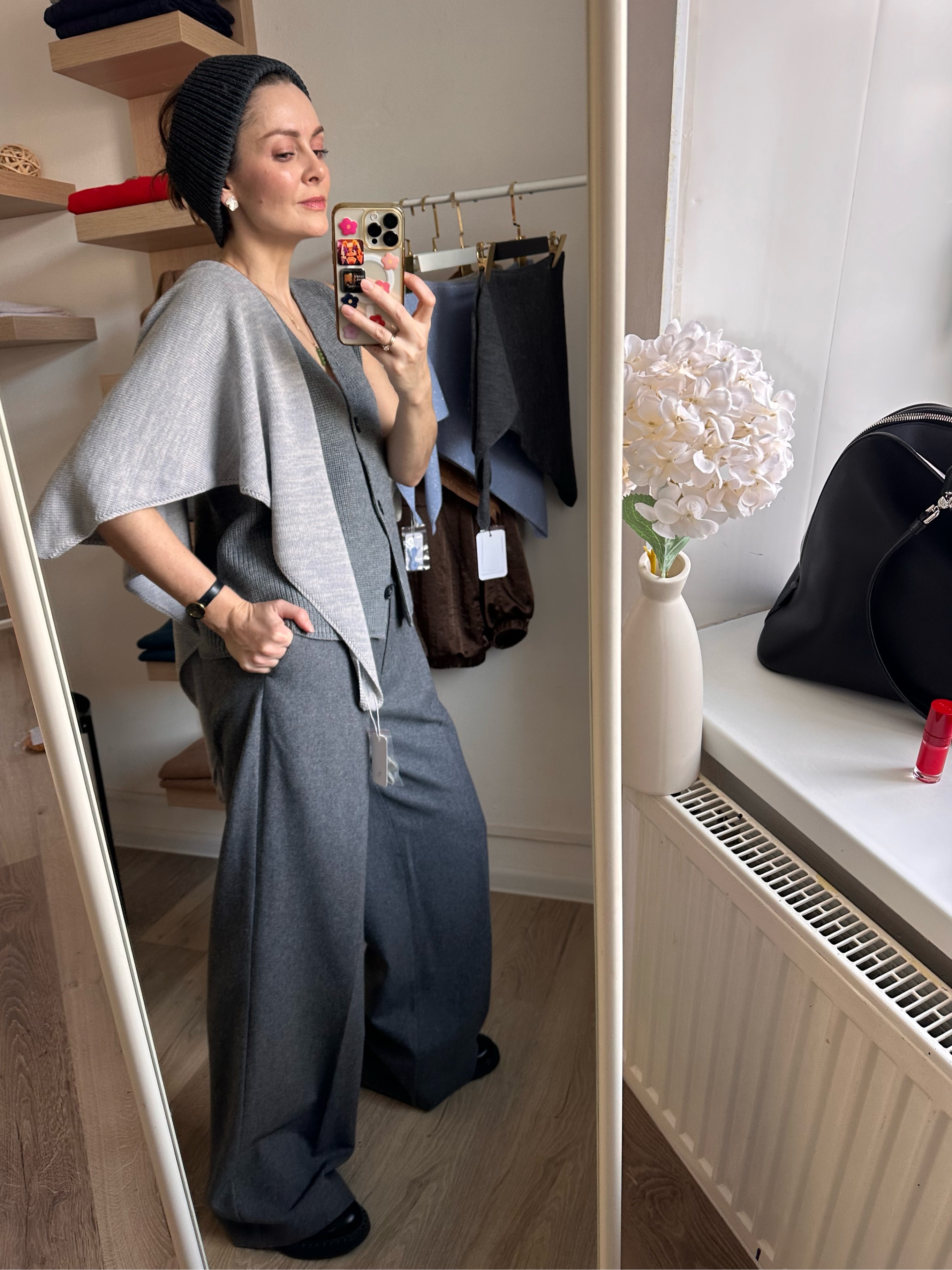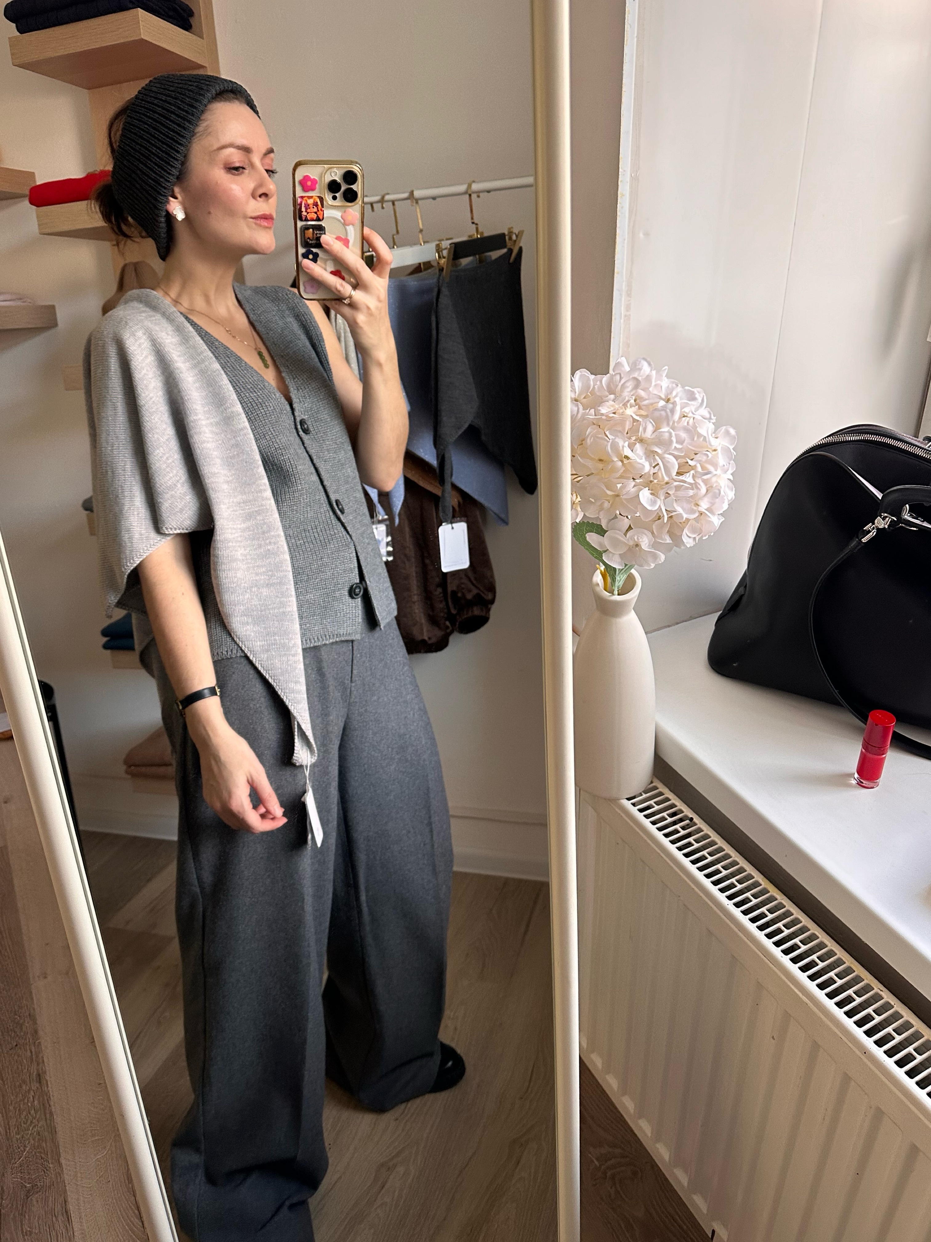 Жилет крупной вязки прямого силуэта в стиле hand made. Для производства использован 100% итальянский премиальный меринос. Уникальное изделие ручного труда, необработанные края, которые мы сохранили без потери качества изделия.